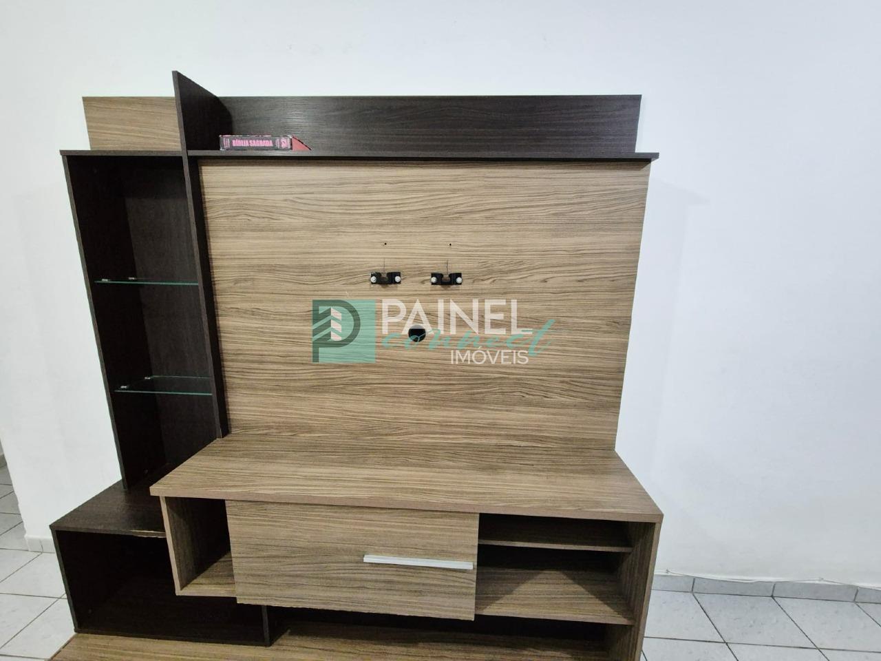O imóvel apresenta armário de cozinha, um rack e um sofá.