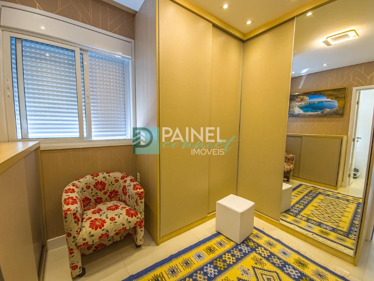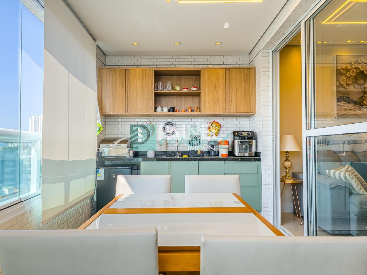 Este apartamento residencial de alto padrão à venda possui 84 m² de área interna distribuídos em 2 quartos sendo 2 suítes, 3 banheiros, 1 sala e 1 varanda gourmet. Acabamento em porcelanato, ar-condicionado, armários planejados (quarto, cozinha e banheiro) e closet, além de área de serviço privativa.