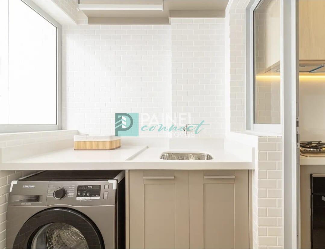 Apartamento com 1 dormitório (suíte), sala com varanda gourmet (churrasqueira a carvão, lavabo, cozinha e área de serviço