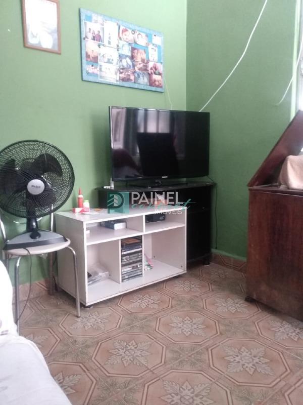 O imóvel é uma residência ocupada, disponível para venda, localizada no bairro Vila Voturua, em São Vicente (SP).