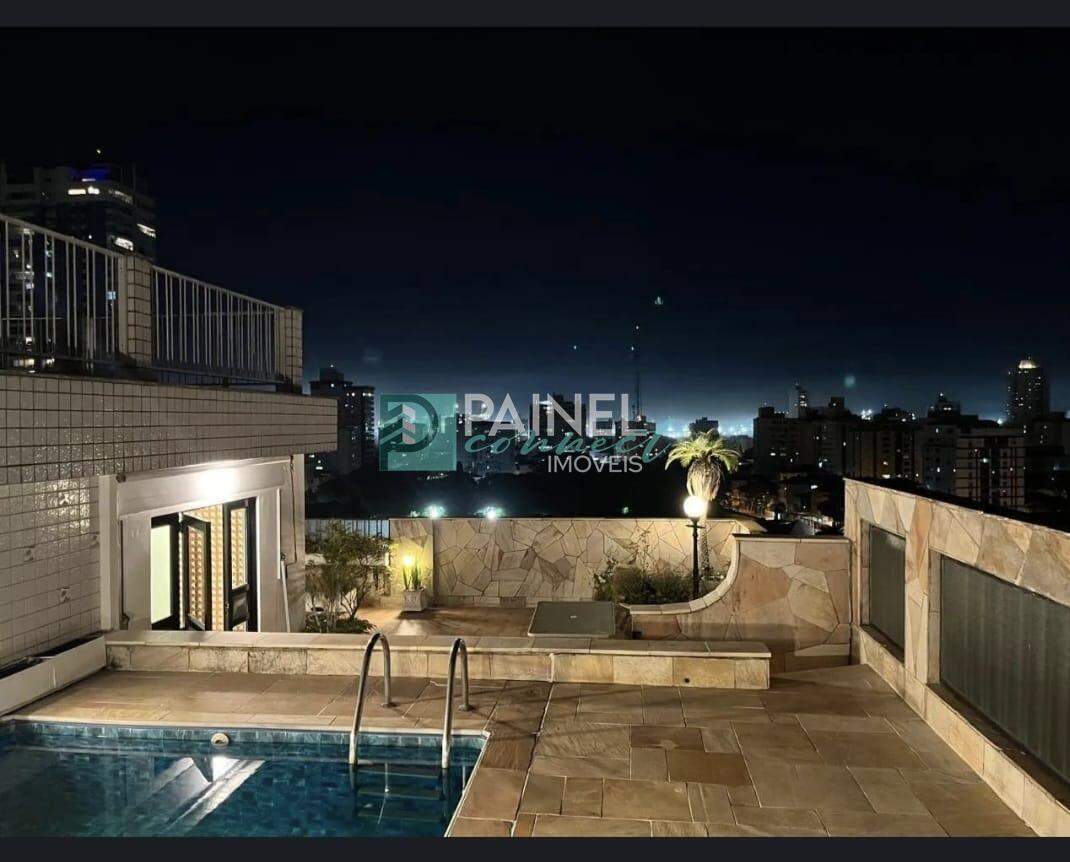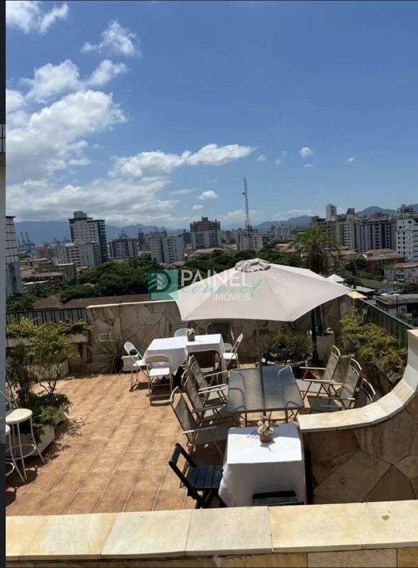 Cobertura residencial de alto padrão em Santos, com 361 m² de área interna distribuídos em 3 dormitórios, 2 salas. Localização privilegiada na Ponta da Praia, frente, com acabamento em mármore/frio, sol da manhã e vista ampla. Elevadores, 2 vagas de garagem, portaria 24h, piscina, churrasqueira e ampla área de serviço. Itens de conforto: ar-condicionado, armários embutidos em quartos, cozinha e banheiro, box nos banheiros e closet. Excelente infraestrutura e segurança para você começar já a viver com tranquilidade.