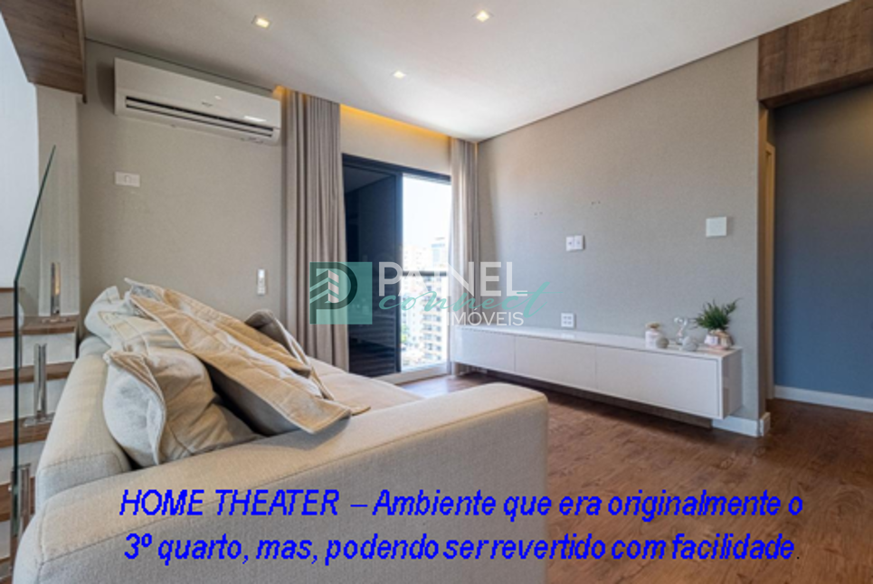 Este excelente apartamento foi originalmente projetado com 3 dormitórios, sendo que atualmente um dos quartos foi adaptado para um confortável Home Theatre, proporcionando um ambiente perfeito para momentos de lazer e entretenimento em casa.