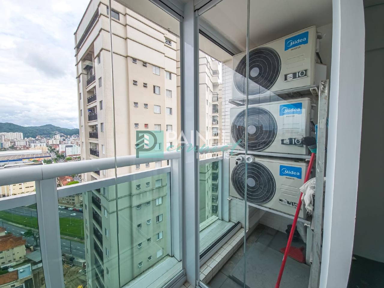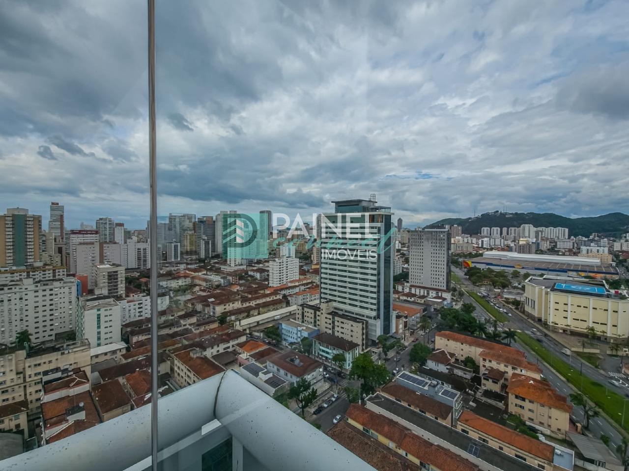 Sala comercial para aluguel em Santos, no bairro Gonzaga em andar alto. Espaço privativo de 62 m² com escritório, lavabo e área de café.